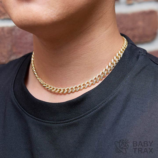 マイアミチェーンネックレス YG 925silver ジルコニア長さ410mm 幅9mm 4MC2